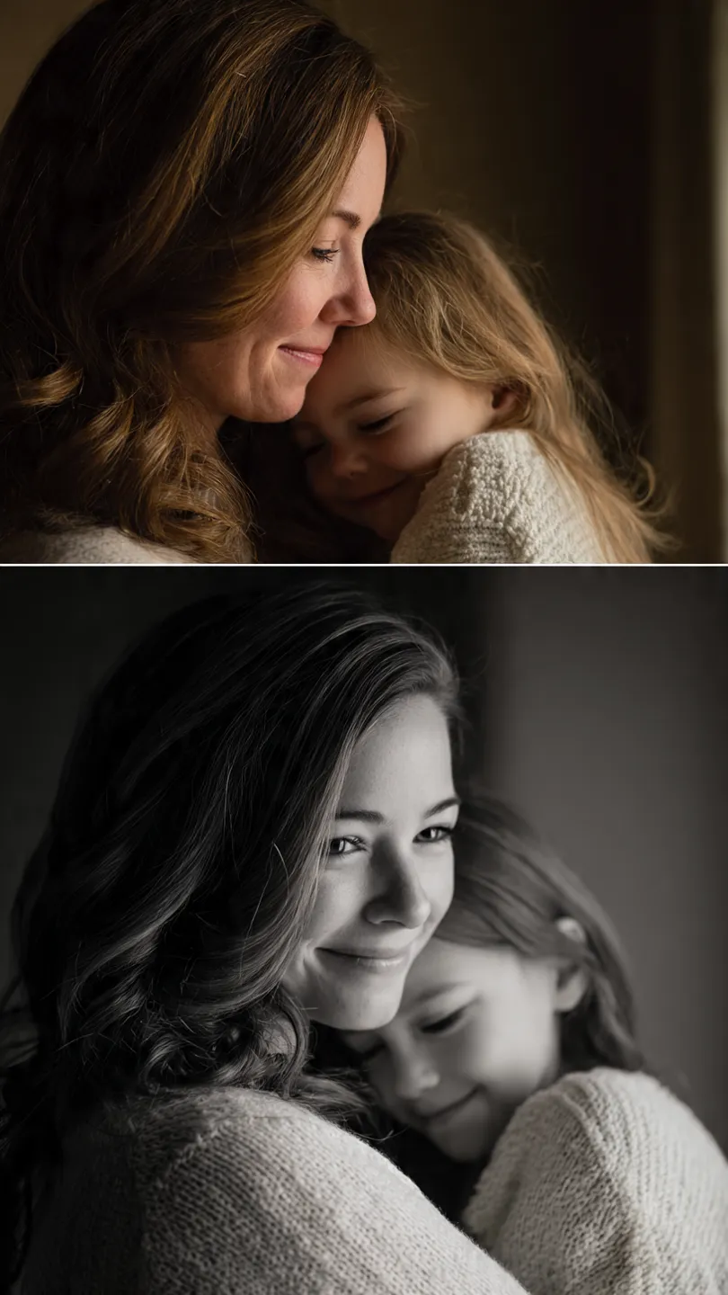 • A Foto Perfeita: Escolha uma foto que capture a essência dela — pode ser uma foto linda da infância ao lado de uma atual.